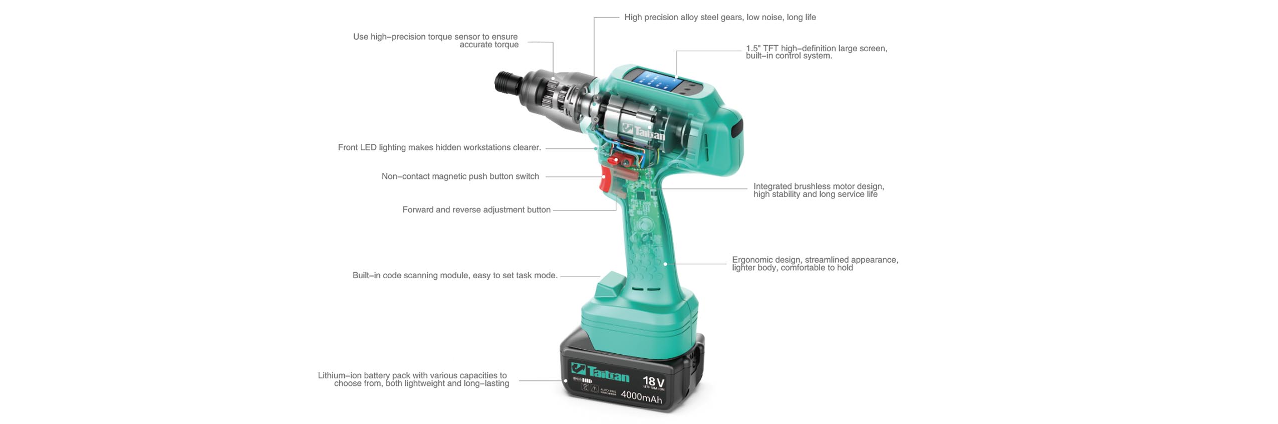 2.Multi-function display screen for quick setting and viewing of tighteningresults.